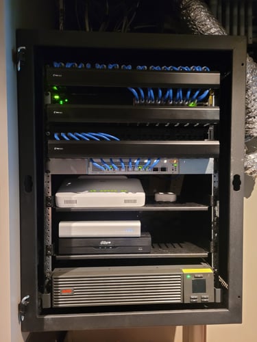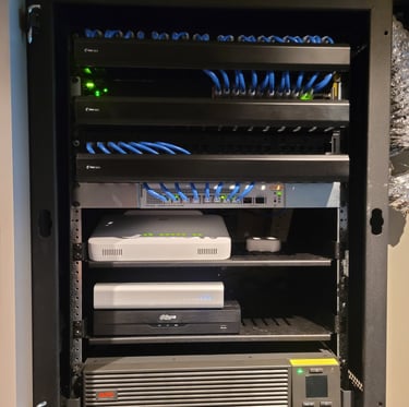 UF. de 600mts2 repartidos en 2 plantas - Diseño coordinación e instalación de Red de datos con Rack central - Instalación de cámaras IP internas/externas, antenas Ubiquiti para distribución de WIFI y sistema de domótica Fibaro.